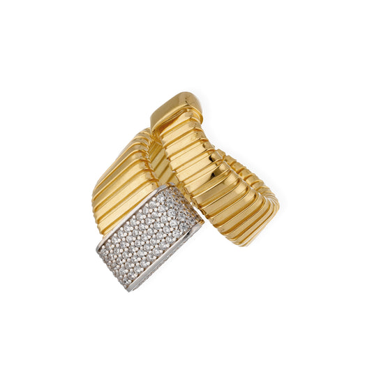 Anillo Entrelazado Tubo de Gas en Plata 925 con Baño de Oro 18k y Circonitas