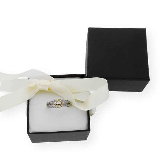 Anillo en Acero con Aro Calado en Oro de ley 18k