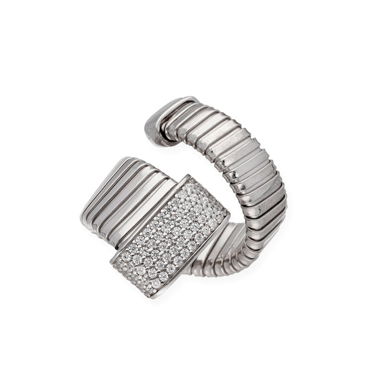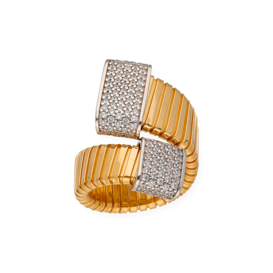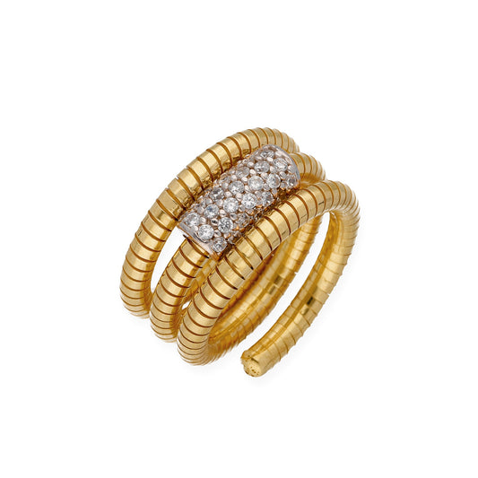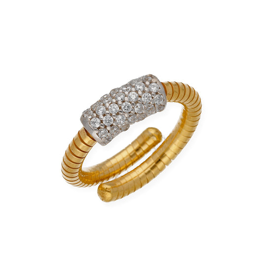 Anillo Una Vuelta Tubo de Gas en Plata 925 con Baño de Oro 18k y Circonitas
