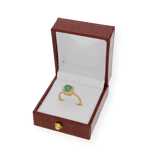 Anillo Isabella Oro 18K con Esmeralda y Orla de Diamantes