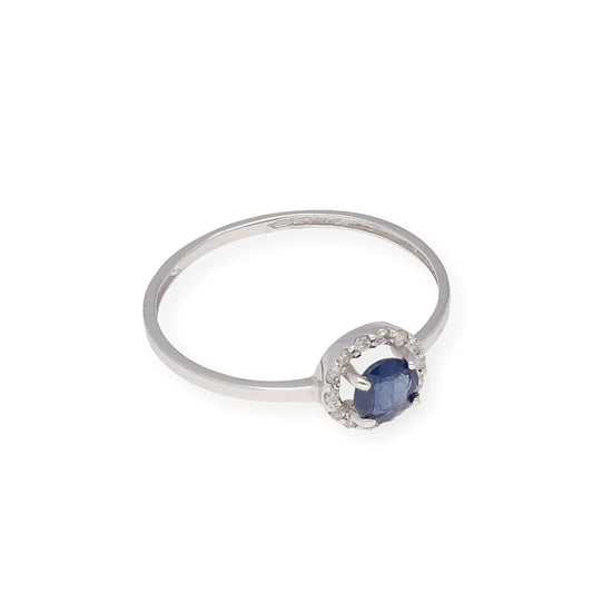 Anillo de Oro Blanco y Diamantes con Zafiro Modelo Rodas