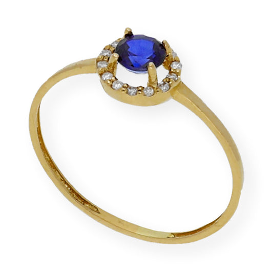 Anillo Isabella Oro 18K con Zafiro y Orla de Diamantes