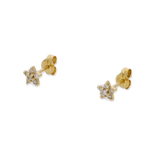 Pendiente Flor de Oro Amarillo 18kt Con Brillantes