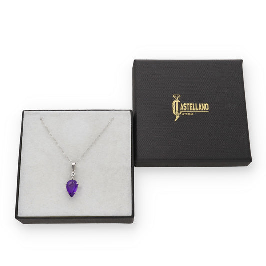Collar con Colgante Marquise en Oro Blanco de 18K con Diamante y Amatista