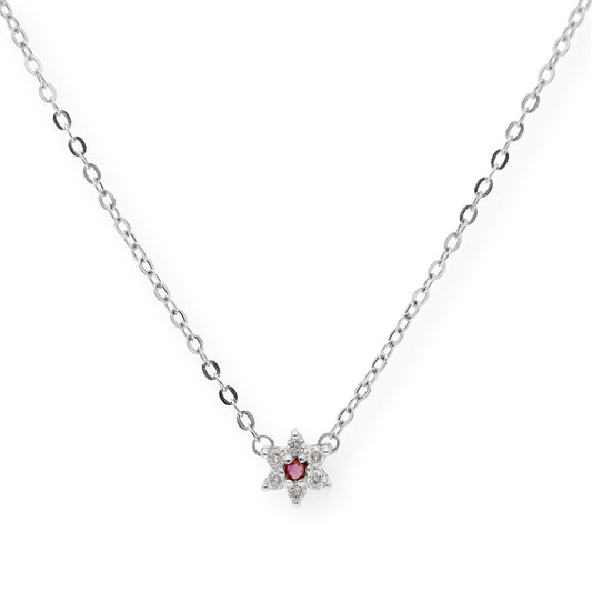 Collar Aster de Oro Blanco 18k con Diamantes y Rubí