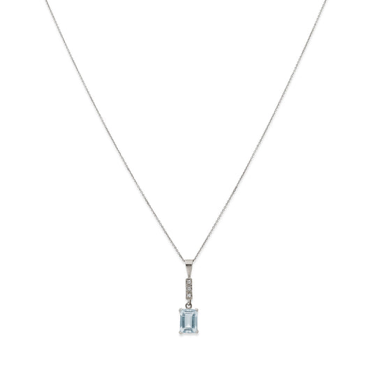 Collar Estela en Oro Blanco 18k con Diamantes y Topacio
