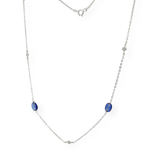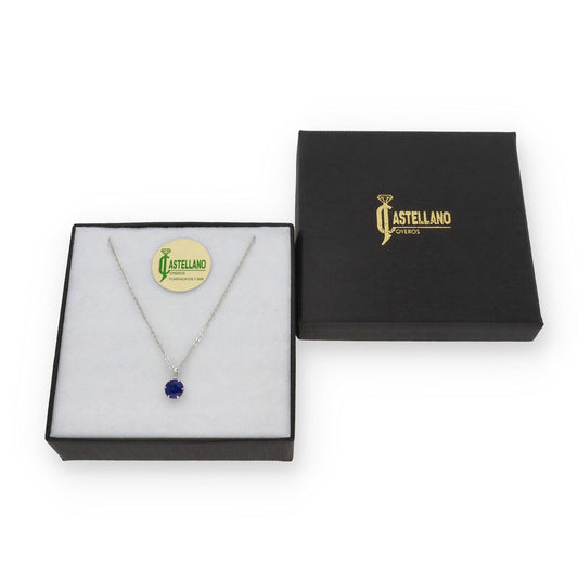 Collar con Colgante Deep en Oro Blanco de Ley 18K y Zafiro