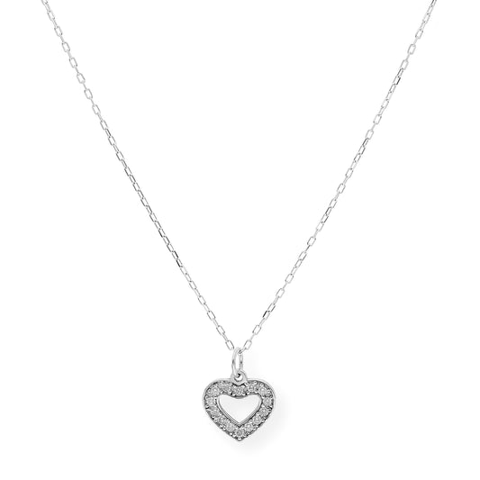 Collar con Colgante de Corazón en Oro Blanco y Diamantes