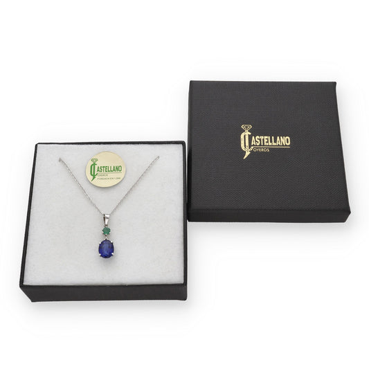 Collar con Colgante Aquaforte en Oro Blanco 18K con Esmeralda y Zafiro