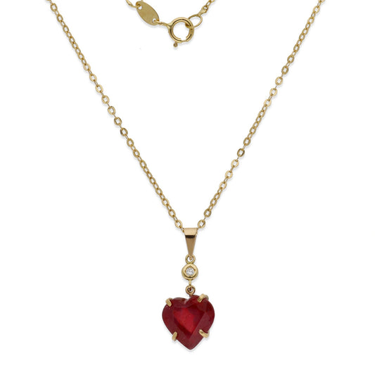 Collar con Colgante Cuore en Oro de 18K con Diamante y Corazón de Rubí