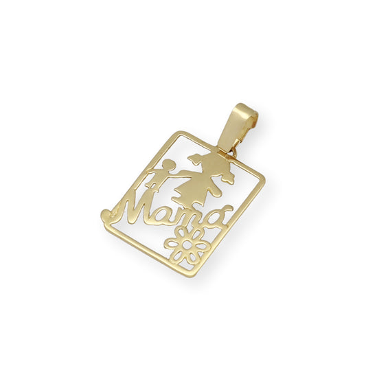 Colgante Mamá Oro 18k Bicolor y Circonita Diseño Rectangular
