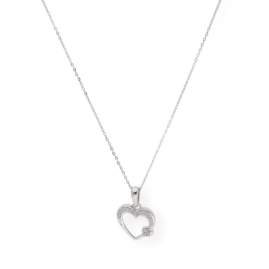 Collar con Colgante de Corazones y Diamantes en Oro Blanco 18k