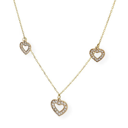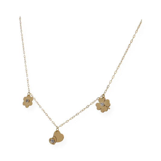 Collar con Forma de Corazón Trébol y Flor en Oro y Diamante