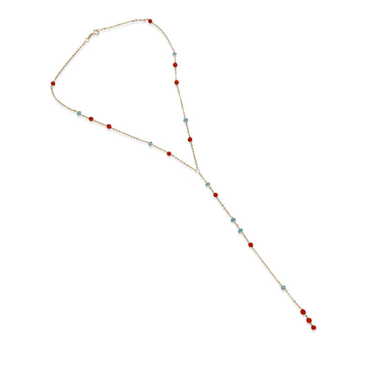 Gargantilla Nexus en Oro de Ley 18K con Cadena de Topacio Azul y Corales