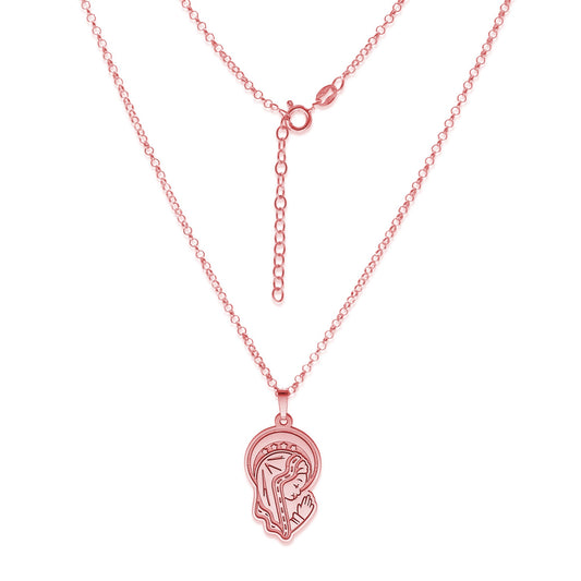 Collar con Colgante en Plata Bañada en Oro Rosa 18K de Virgen Niña