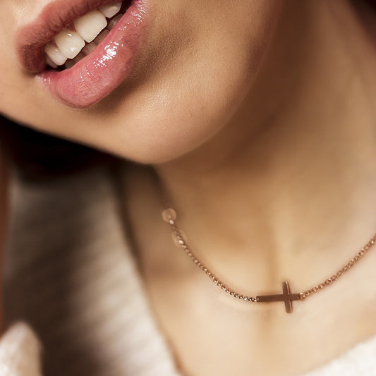 Colgante de Cruz Horizontal en Plata de Ley 925 Bañada en Oro Rosa 18K