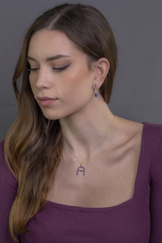 Collar con Colgante Antal en Oro 18K y Tanzanitas Diseño de Inicial