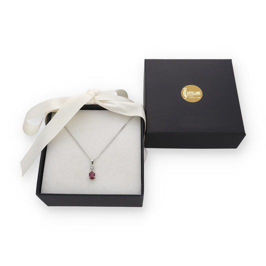 Collar con Colgante Rose con Diamante y Rubí en Oro Blanco 18k