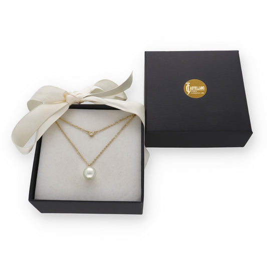 Collar Doble Modelo Ariel de Oro 18k con Diamante y Perla Australiana Natural