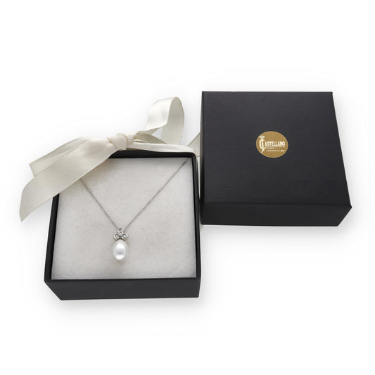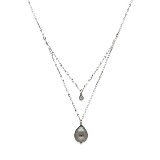 Collar Doble Modelo Ariel de Oro Blanco 18k con Diamante y Perla Tahití Natural