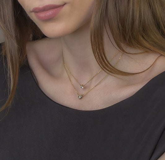 Collar con Colgante de Oro 18k y Diamante Central Modelo Firenze