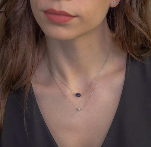 Collar Doble Juliette de Oro Blanco 18k con Diamante y Zafiro