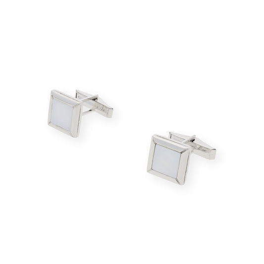 Gemelos de Plata con Nácar Diseño Cuadrados
