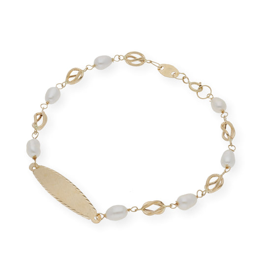 Pulsera de Jaula Estilo Esclava de Oro de Ley y Perlas