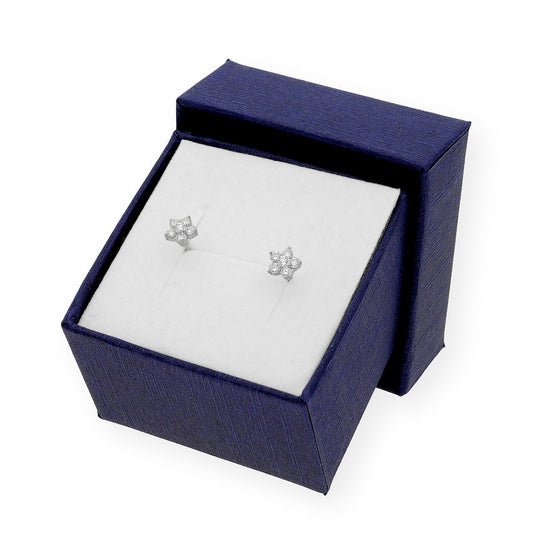 Pendientes Trébol Calado con Diamante central en Oro blanco 18K