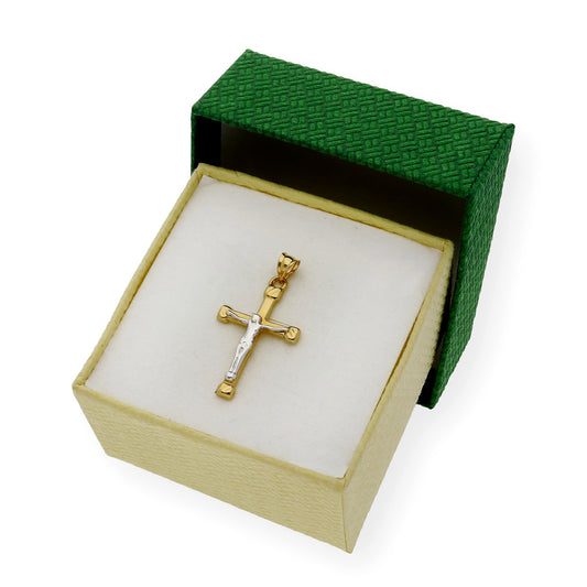 Colgante Pequeña Cruz Tubo con Cristo en Oro 18K
