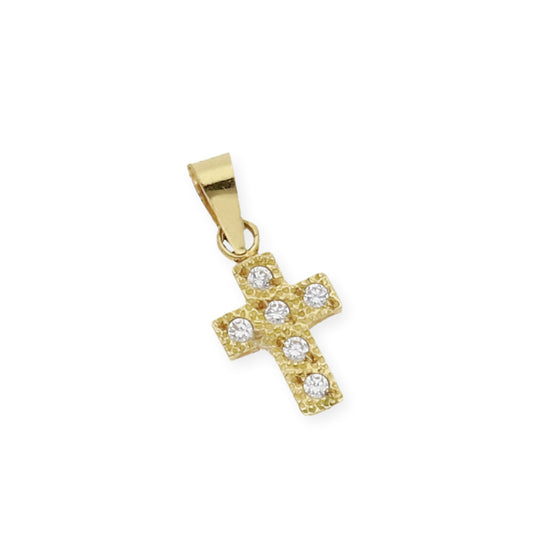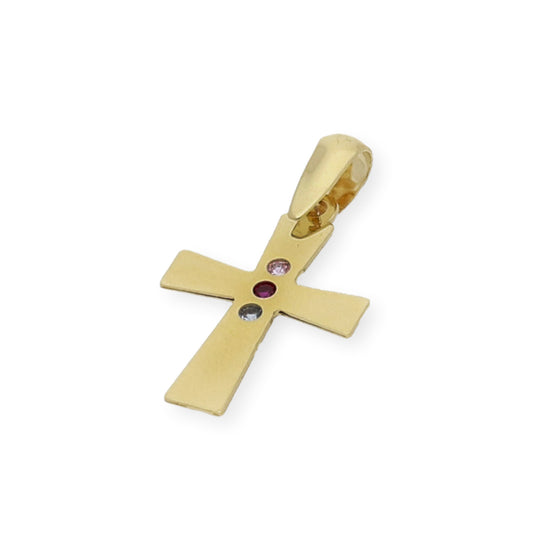 Colgante Cruz con Circonita de Color Oro 18K