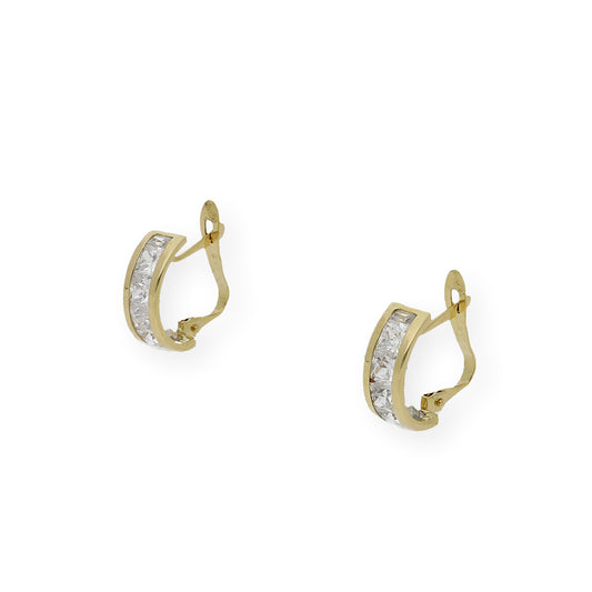 Pendientes Medio Aro en Oro de Ley 18K con Circonitas