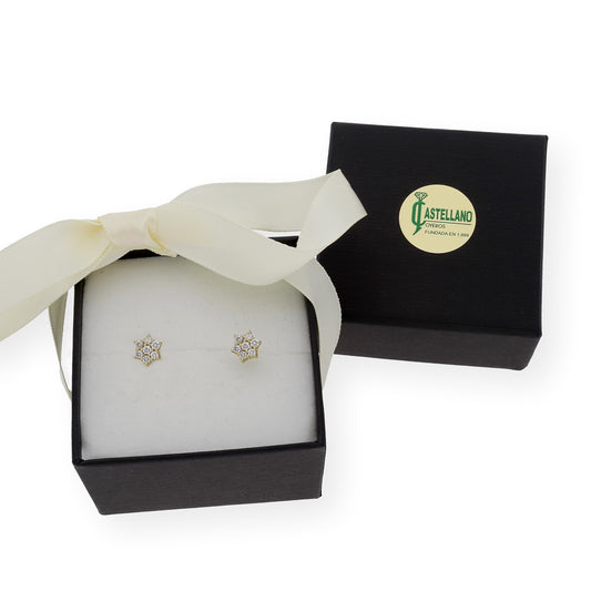 Pendientes de Flor en Oro de Ley 18K con Diamantes talla brillante