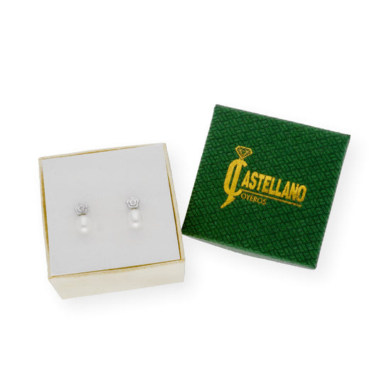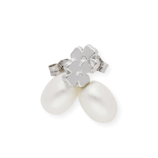 Pendientes flor de Oro Blanco 18k con Diamantes y Perlas