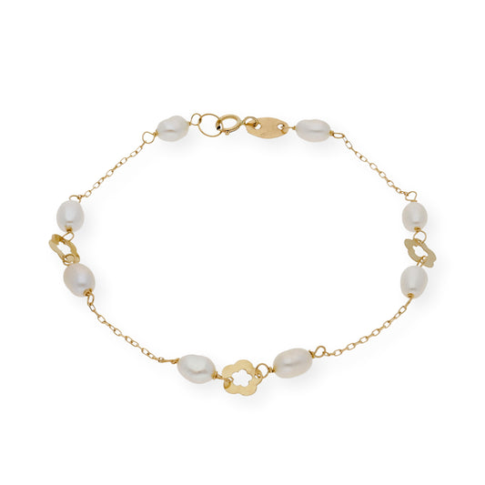 Pulsera de Perlas Barrocas y Flor de Oro de Ley 18k para Comunión