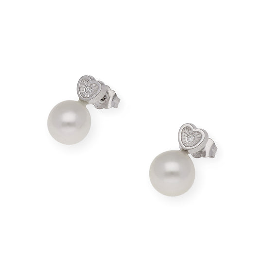 Pendientes Corazón en Oro Blanco 18k con Diamantes y Perlas