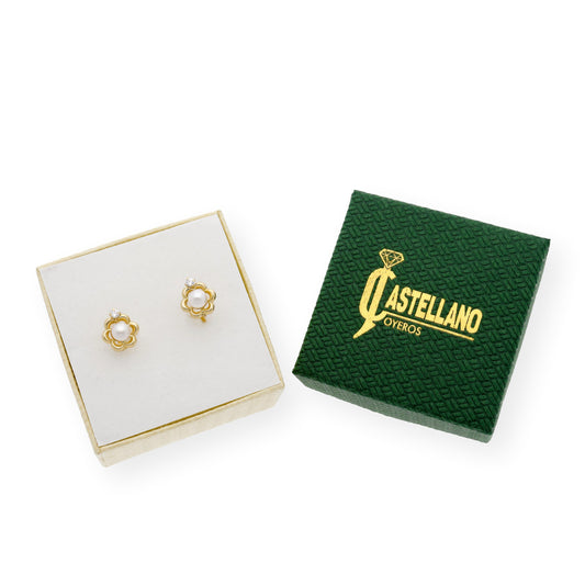 Pendientes margarita de Perlas y circonitas Oro 18k