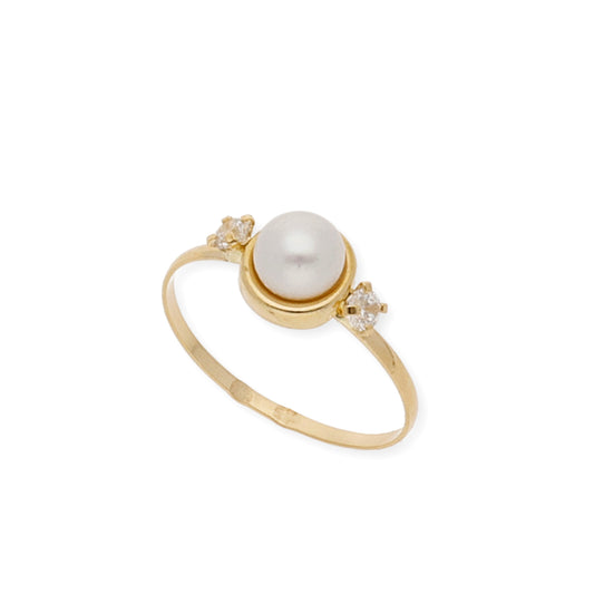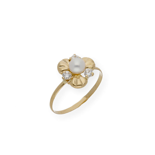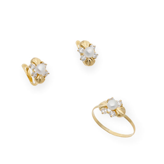 Conjunto Alba de Pendientes y Sortija en Oro 18k, perlas y circonitas