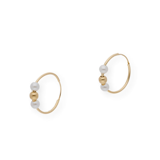 Pendientes de Aro de oro 18k con perlas y bola de oro.