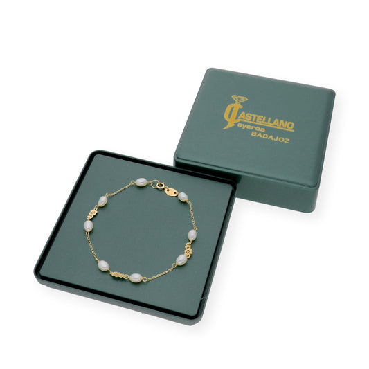 Pulsera de Comunión con Diseño de Oso y Perlas en Oro de Ley