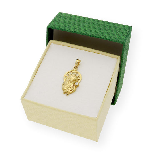 Medalla Virgen Niña de Comunión en Oro 18k y Circonita