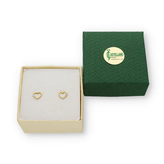Pendientes de Corazón Calado en Oro de Ley 18K con Circonita
