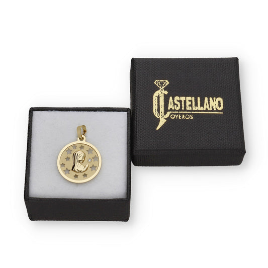 Medalla Virgen NIña en Oro 18K Pequeña con Circonita y Estrellas Caladas