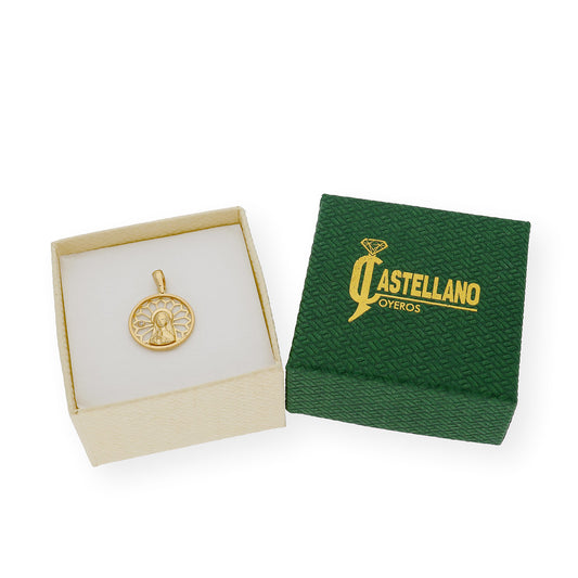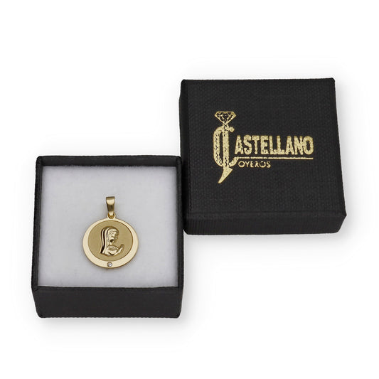 Medalla Virgen Niña en Oro 18K Redonda Calada con Circonita