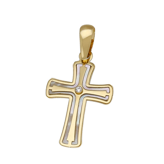 Cruz en Oro 18k y Nácar con Circonita Central Modelo Tristán