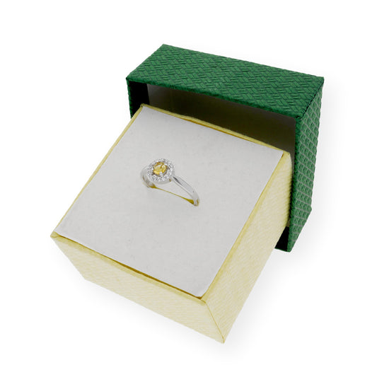 Anillo Yurey de Plata con Cuarzo Citrino Central y Circonitas