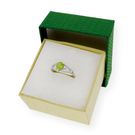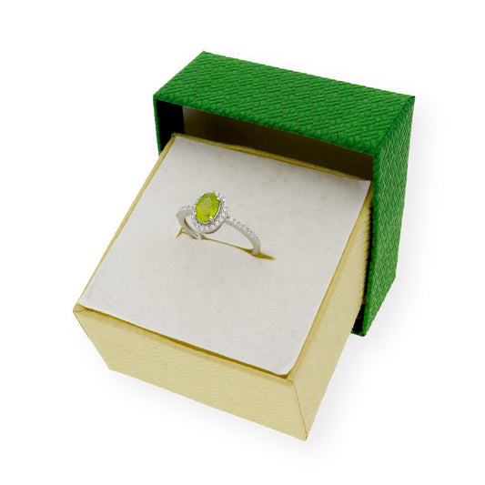Anillo Yulss de Plata con Peridoto Central y Circonitas