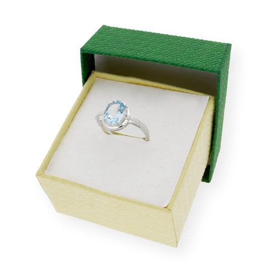 Anillo Tenyu de Plata con Topacio Azul Central y Circonitas Laterales
