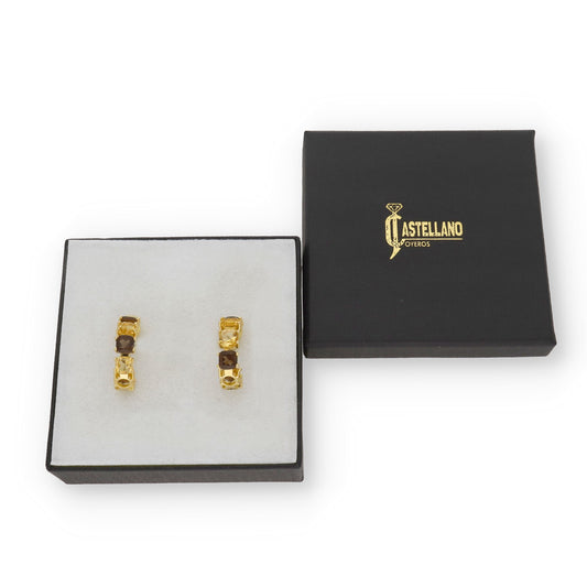 Pendientes Apex Medio Aro en Oro de Ley 18K con Cuarzo Fumé y Citrino