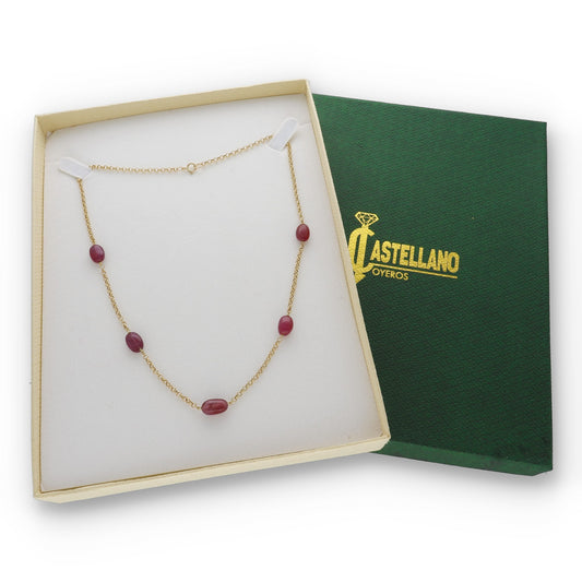 Collar de Oro de ley 18K y Rubíes Naturales Ovales